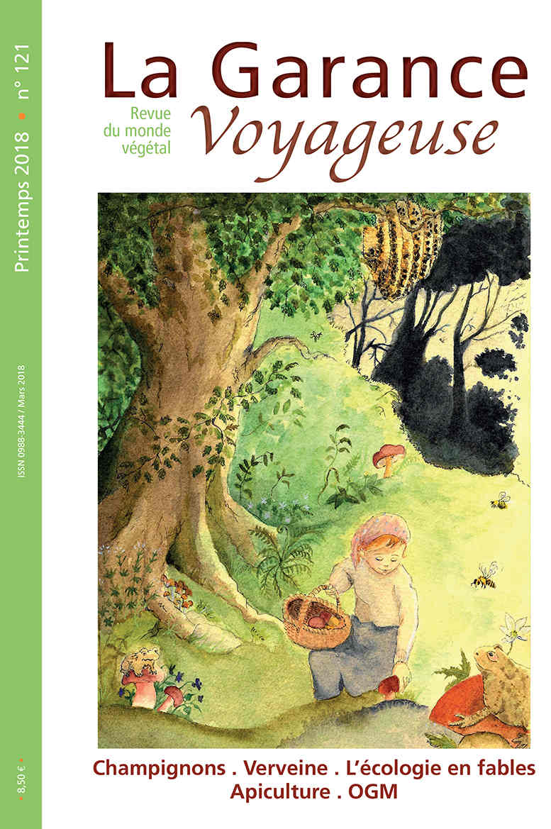 La Garance voyageuse prend un peu de recul par rapport au monde végétal. Elle ouvre une nouvelle série de Chroniques dessinées, où les plantes nous content l’écologie par les fables. Elle se penche sur une ethnologie de la cueillette de champignons. Elle vous entraîne dans un débat sur l’impact de l’apiculture sur la biodiversité, et sur l’opportunité de mettre des ruches en ville. Elle fait un point sur un autre sujet de controverse, celui de l’emploi des nouvelles technologies de manipulation génétique. Et elle revient enfin sur l’herbe, en vous faisant découvrir toutes les vertus de la « mauvaise herbe » de vos gazons qu’est la verveine officinale ! Notes de lectures pour petits et grands, brèves sur expositions, publications ou formations en botanique complètent ses pages printanières.